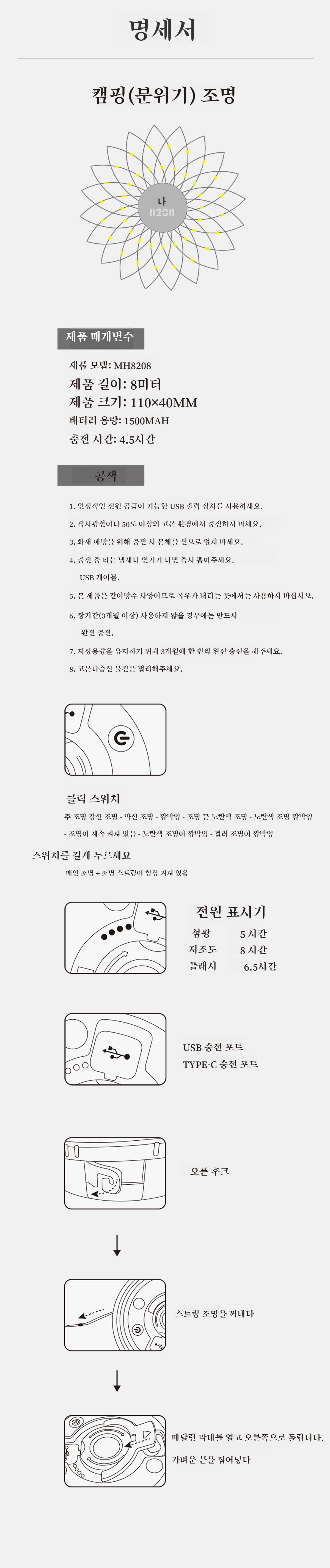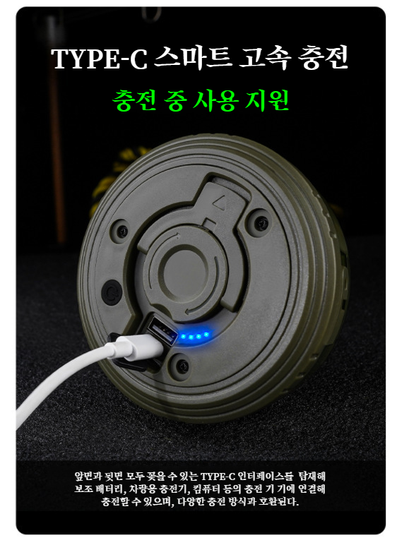 USB 충전 포트가 보이는 캠핑 무드등