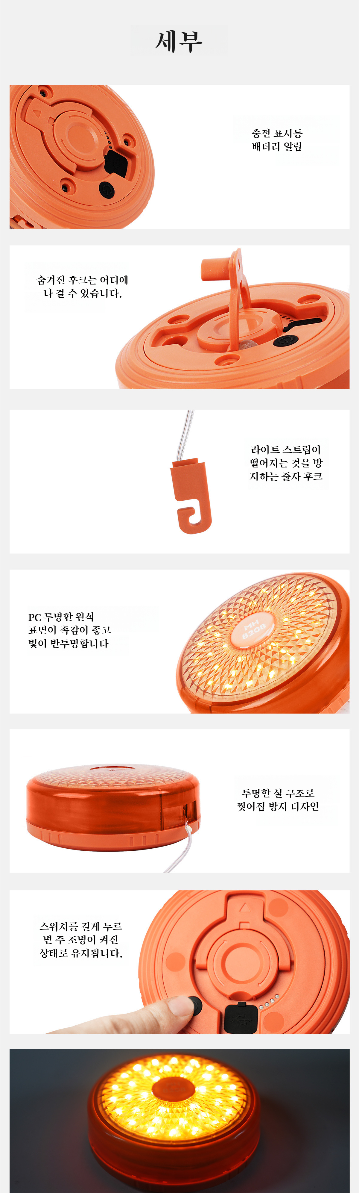 줄자 수납 기능을 보여주는 캠핑 등