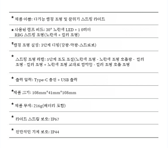 멀티 줄자 수납 캠핑 등 텐트 아웃도어 캠핑 등 알록달록 무드등 Usb 충전 줄자 수납등