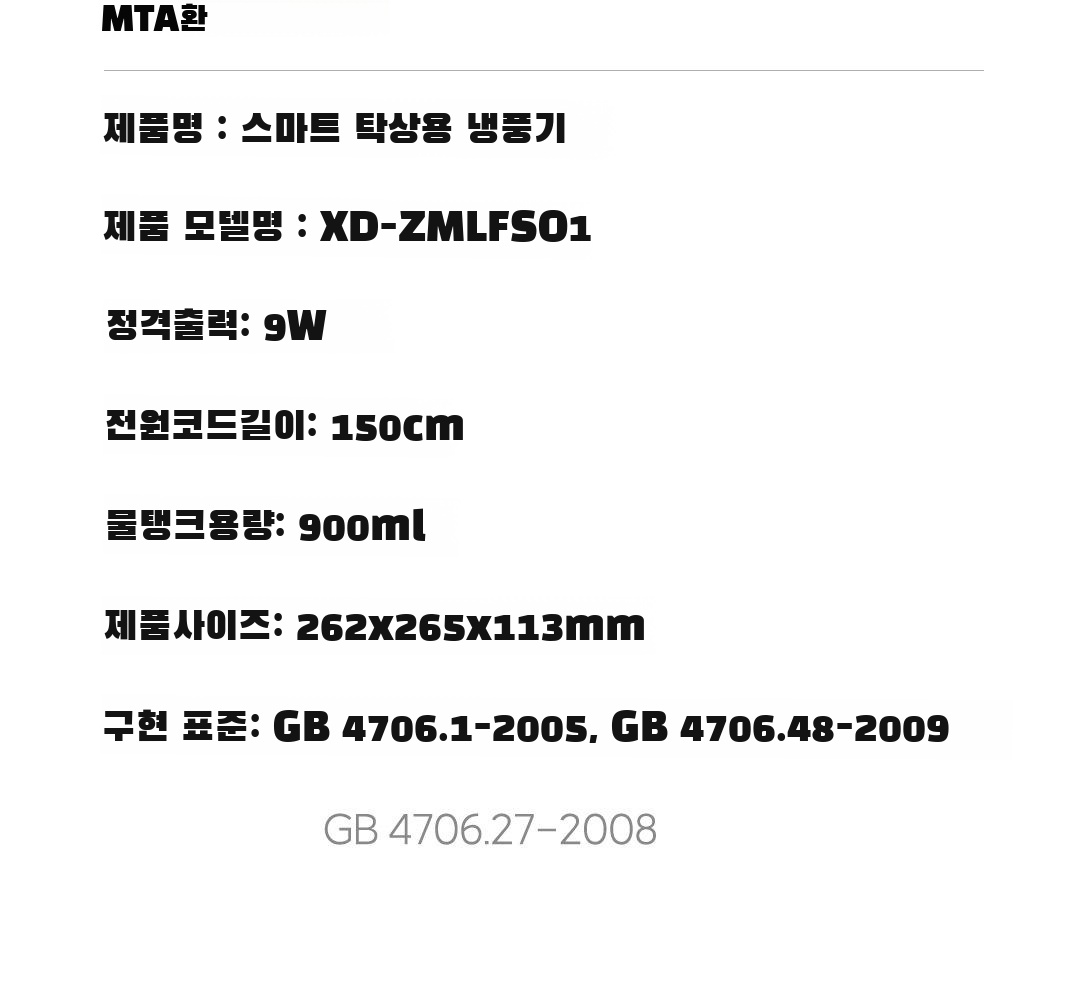 샤오다페이 스마트 탁상용 냉풍기 전면 모습