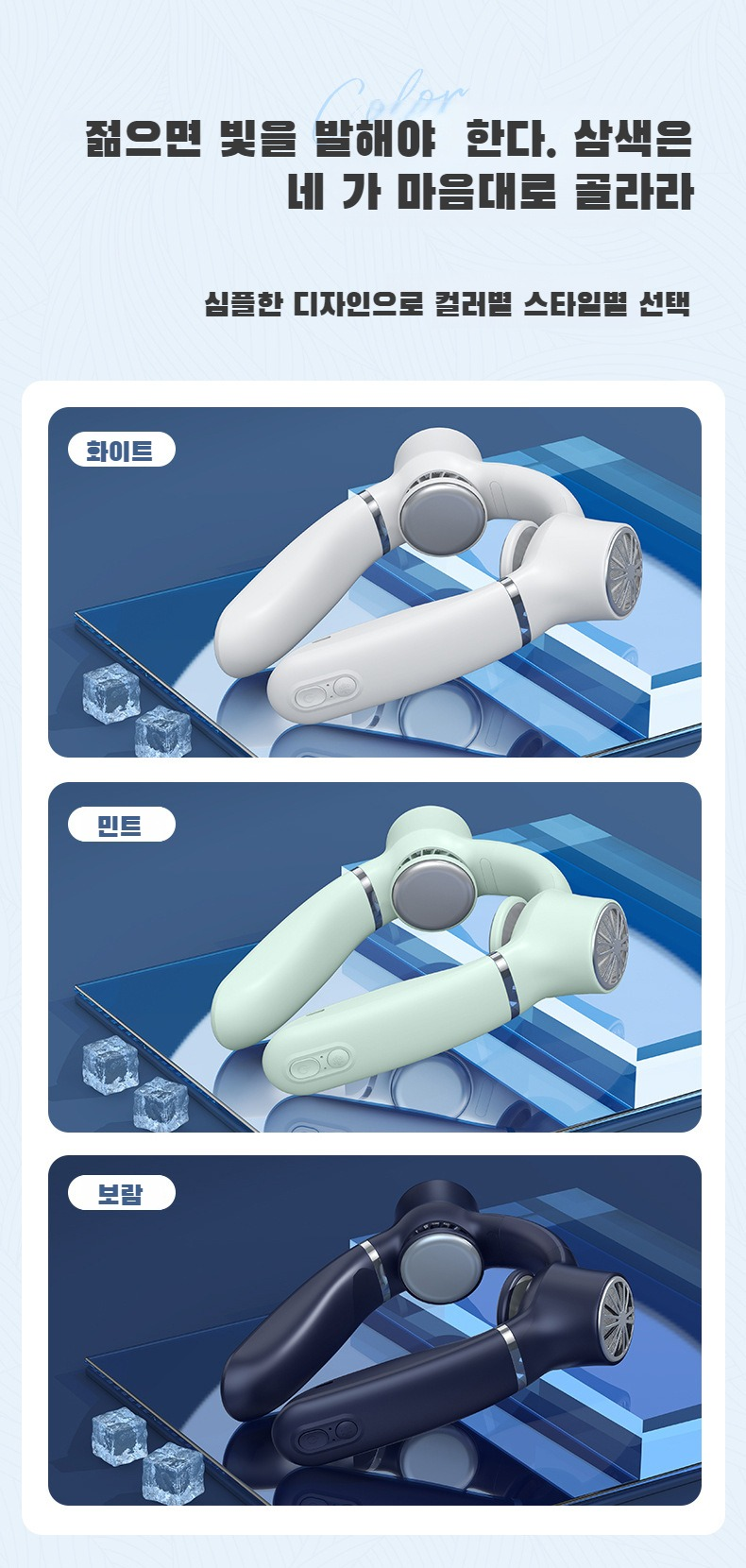 다양한 색상의 소형 목걸이 선풍기 라인업